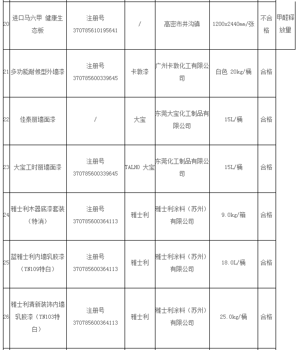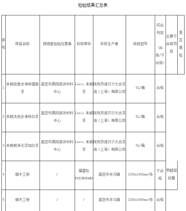 【中國涂料采購網】按照山東省工商局《2016年全省流通領域商品質量抽查檢驗工作計劃》,依據《消費者權益保護法》、《產品質量法》和《流通領域商品質量抽查檢驗辦法》等法律法規規定,濰坊市工商局委托譜尼測試集團于2016年10月10日至11月20日在昌邑市、高密市的部分商場、專賣店和批發市場共抽樣檢驗裝飾裝修材料51組,其中合格47組,不合格4組。