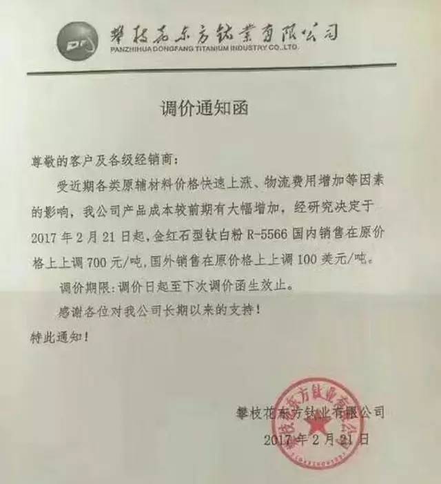 鈦白粉集體漲價背后的邏輯 涂料企業淪為原料企業的打工者