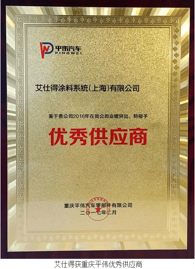 艾仕得大中國區交通運輸涂料業務總監陳建邦先生表示:“我們很開心能夠得到重慶平偉集團的認可,也非常自豪能與其一起為海內外的汽車制造商客戶提供服務。這個獎項認可了艾仕得的技術優勢和客戶為先的服務理念。”