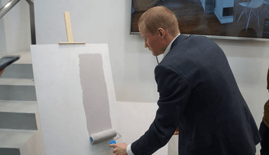 整個開業儀式環節設置新奇、充實。芬蘭著名設計師、迪古里拉高級產品經理Auvinen Joonas現場演示芬琳漆涂裝效果。Auvinen Joonas表示芬琳漆在不兌水的情況下只需涂刷一遍就能達到很好的效果。