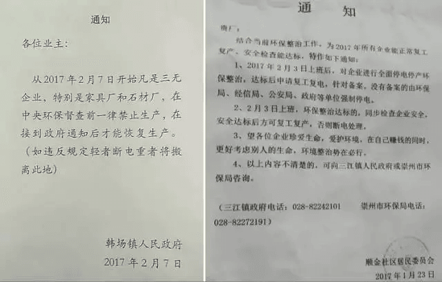 2月7日,2017年四川省環(huán)境保護工作會議上,省環(huán)保廳廳長于會文強調(diào),2017年成都平原地區(qū)大氣污染治理是全省環(huán)保“一號工程”。在2017年3月31日之前,成都市所有的“三無”企業(yè)都要強制關(guān)停。整治行動開始以后,成都市雙流區(qū)、武侯區(qū)各部門及街道聯(lián)合行動,對各家不達標的工廠進行地毯式的檢查,眾多印染、涂料、鞋材等工廠已人心惶惶。