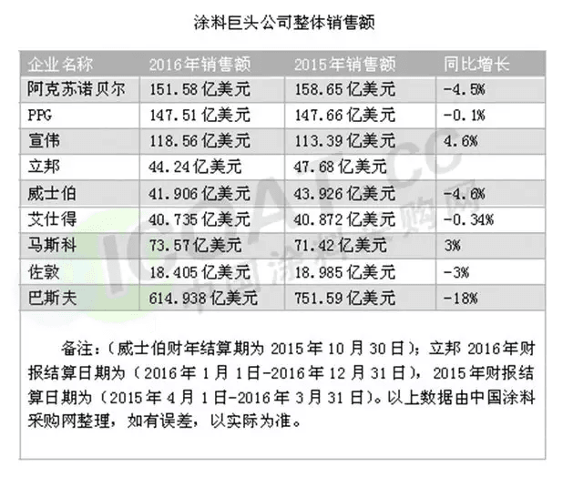 全球外資涂料巨頭企業(yè)業(yè)績分析