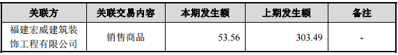 公司2015 年度股東大會通過了向關聯方宏威裝飾銷售產品的議案,會議同意公司 2016 年度以市場價格向宏威裝飾銷售不超過 1,500 萬元的產品。截止 2016 年 12 月 31 日,公司共向宏威裝飾銷售產品金額共計 53.56 萬元,尚在股東大會授權范圍內。