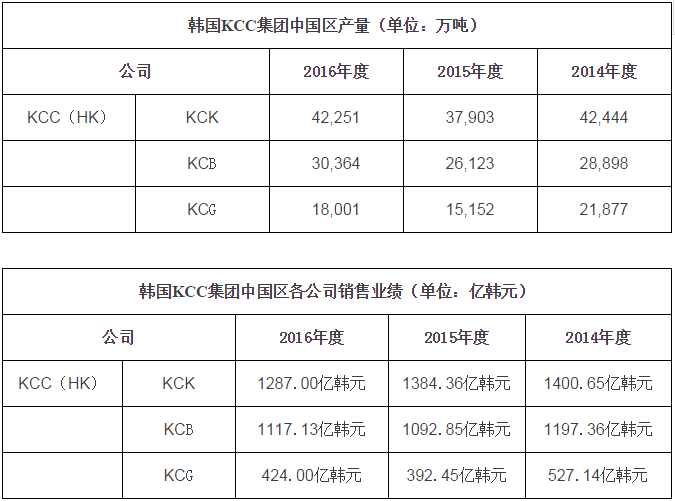 年報(bào)顯示,KCC集團(tuán)2015年涂料業(yè)務(wù)銷售額為16006.56億韓元,約14.406億美元。KCC中國(guó)2015年涂料銷售額為3167.43億韓元,約合人民幣17.421億元。