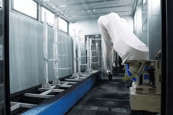 該涂裝車間配備有9臺機器人RP L033,用于火焰處理、底漆、色漆以及清漆。所有噴漆機器人配備高效緊湊的EcoBell3霧化器,搭配4套特殊涂料供應系統EcoSupply P,降低了油漆損耗,沖洗劑消耗量少,涂料更換時間短,能夠幫助客戶快速地收回成本。