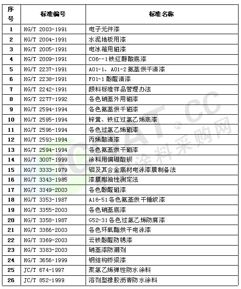 6月2日,工信部發布2017年第23號公示,按照工信部推薦性行業標準集中復審工作的安排,現已完成28726項推薦性行業標準的復審工作(復審結論統計表見附件1,各行業或領域復審結論表見附件2-7),其中《帶壓密封技術規范》等20466項行業標準繼續有效,《鎂鋼制品絕熱工程施工技術規范》等5511項行業標準予以修訂,《化工蒸汽系統設計規定》等2749項行業標準自本公告發布之日起廢止。據統計,其中廢除26項涂料類標準,修改13項涂料類標準,繼續使用標準147項,現整理名單如下: