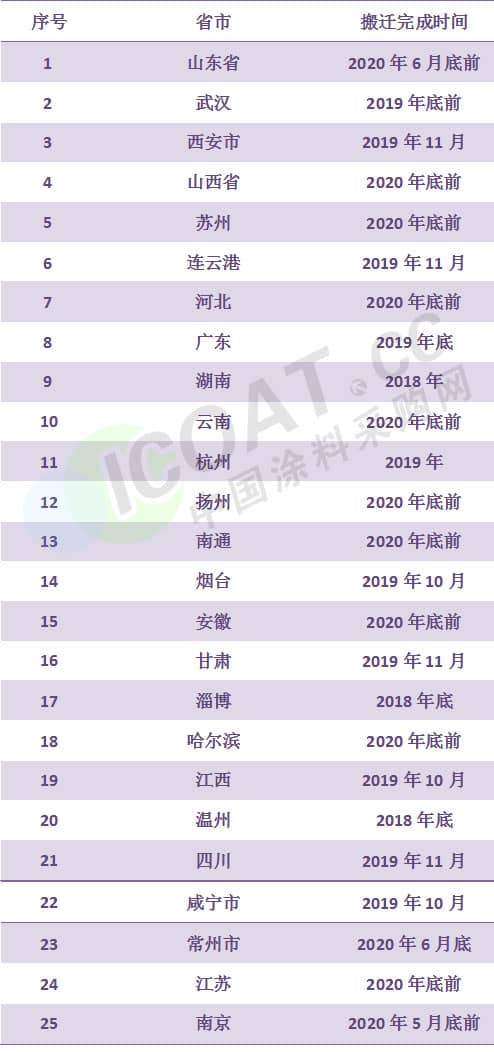 25省市化工企業(yè)搬遷完成時(shí)間表