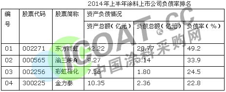 【中國涂料采購網(wǎng)】在很多時候,我們不管是對行業(yè)、企業(yè)發(fā)展進行評估、預測,看到的都是利好的一面,而有時候有些地方我們注意不到,而這些被我們忽略的地方往往最能反映出問題的真實性。2014年已進入最后的沖刺階段,此時,我們對2014年上半年涂料上市公司的總資產(chǎn)及負債率進行簡單的介紹。