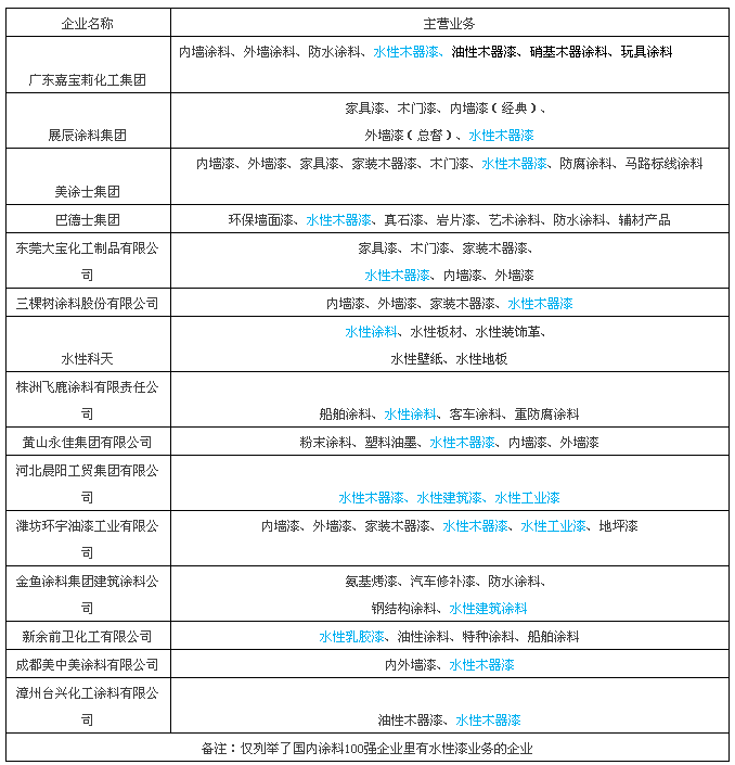 涉及水性漆業務的企業名單