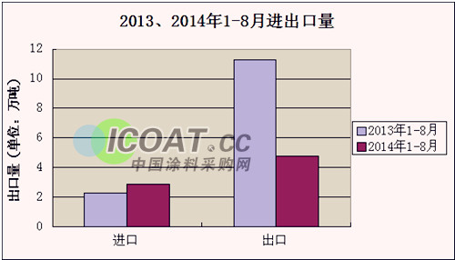 有數(shù)據(jù)顯示,2013年我國1至8月國內(nèi)丙烯酸累計進口量為2.295萬噸,累計出口量為11.296萬噸,今年我國丙烯酸累計進口量為2.873萬噸,累計出口量為4.758萬噸,累計進口量比去年同期增長了25.18%,累計出口量比去年同期卻下降了57.88%。進口量的增加,以及出口量的降低也加劇了我國丙烯酸行業(yè)的嚴峻形勢。