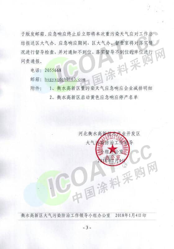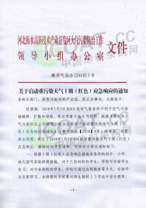 河北衡水高新技術產業開發區重污染應急響應的通知