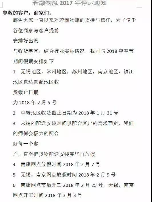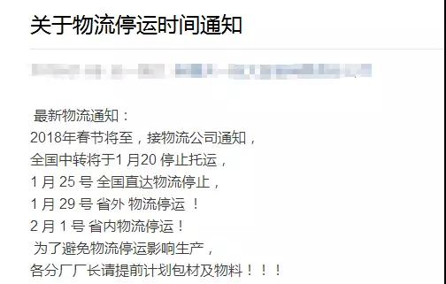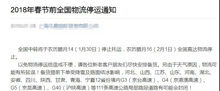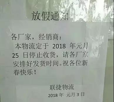 據(jù)悉,全國物流放假時(shí)間已基本確定,各地物流停運(yùn)時(shí)間表大體如下(確實(shí)比往年提前了):