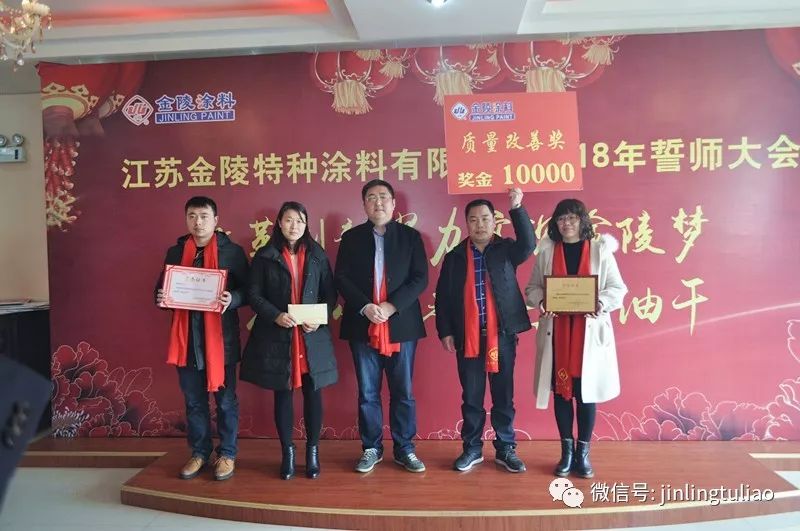 會議逐漸步入了尾聲。回顧2017,金陵涂料既經受了原材料漲價的風波、環保風暴的洗禮,也獲得了二級安全生產標準化達標企業、江蘇省商標戰略實施示范企業(金帆獎)等殊榮,金陵涂料副董事長卞直兵表示:產品質量的穩定,讓公司訂單源源不斷;而工藝的改進、新產品的開發,則讓公司發展后勁不竭。“手上在做,眼中在看,心里在想”,全體員工團結一致,務實創新,金陵涂料工業地位將不斷提升,走的更遠。