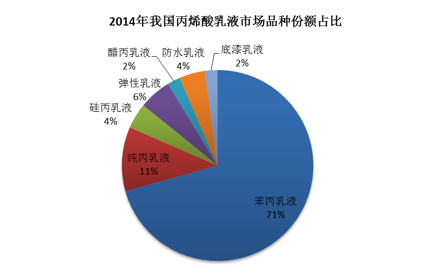 圖2 2014年我國(guó)丙烯酸乳液市場(chǎng)品種份額占比