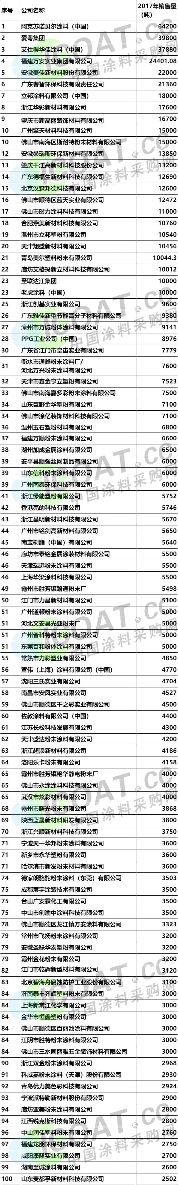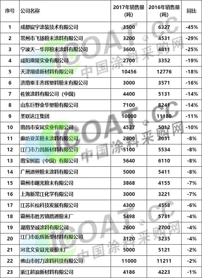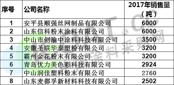 在2017年銷量百強榜中,新入圍的粉末涂料企業(yè)有8家。