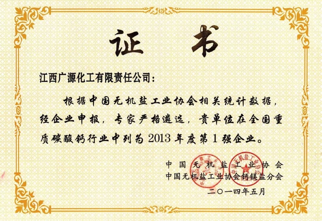 提到永豐縣碳酸鈣產(chǎn)業(yè),就不得不提“中國(guó)碳酸鈣行業(yè)重鈣第一強(qiáng)企業(yè)”——江西廣源化工有限責(zé)任公司(以下簡(jiǎn)稱(chēng)“廣源化工”)。近幾年,廣源化工在碳酸鈣粉體領(lǐng)域的深入研究,極大的推動(dòng)了永豐縣碳酸鈣產(chǎn)業(yè)迅速發(fā)展。