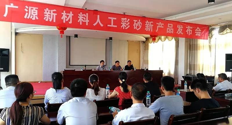 2018年8月13日,“廣源新材料人工彩砂新產品發布會”在公司黨群活動中心隆重召開,廣源新材料公司總經理李永亮、副總經理王軍政等公司領導出席了新產品發布會。