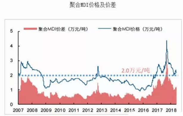 最后,再來看兩個歷史節點,2009年和2015年,這兩個年份是萬華業績的兩個凹陷,同樣也正是MDI價格的兩個低谷。