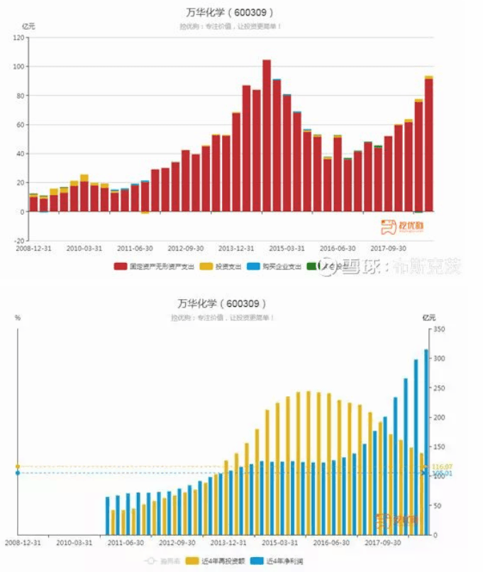 投資擴產、技術研發、一體化產業鏈——萬華主要就是通過做好這三件事來戰勝產品價格周期的,這三項抗周期操作才是業績和股價的決定性因素。通過這三項抗周期操作,萬華不斷鞏固核心業務又創建新興業務,在波峰與波谷的交錯中完成了波段式爬升。