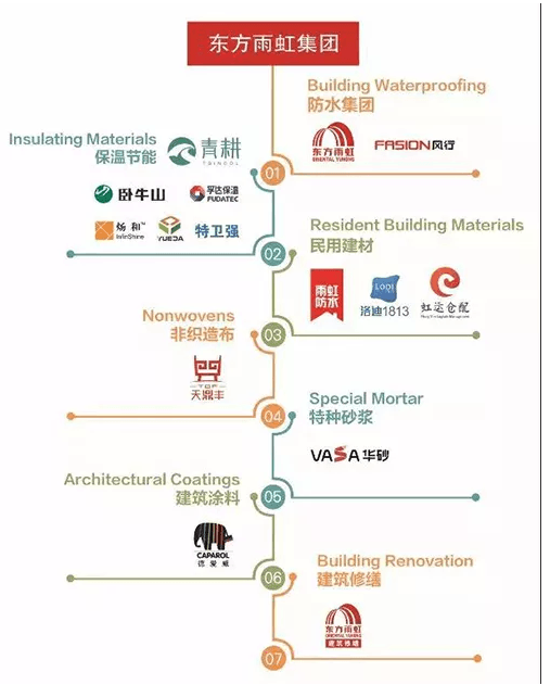 從年產值300萬發展至百億,從單一防水業務到建筑建材系統服務商。圍繞防水上下游及相關業務拓展,全力守護美好人居,如今,公司形成建筑防水、民用建材、保溫節能、特種砂漿、建筑涂料、非織造布、建筑修繕等7大事業板塊合力的建筑建材系統服務能力。