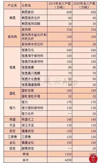 在滌綸的產(chǎn)能中,桐昆、新鳳鳴、恒逸、盛虹、恒力為前五大生產(chǎn)商,2019/2020年的產(chǎn)能約國(guó)內(nèi)總產(chǎn)能的54%左右。
