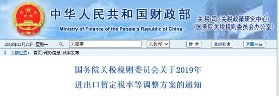 自2019年1月1日起繼續對鉻鐵等108項出口商品征收出口關稅或實行出口暫定稅率,稅率維持不變,取消94項出口暫定稅率。