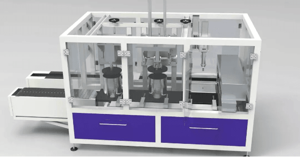 目前國內存在的5L自動灌裝機一般是直線型的,該直線型設計存在以下局限性:設備較長至少需要兩個人操作,即一個人在前端放入容器,另一個人在后端將灌裝、加蓋完成的容器取走;設備不封閉,存在安全隱患;由于設備不封閉,物料揮發物的無法控制,不容易做到無害化生產。