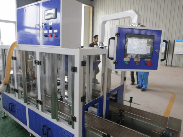 灌裝機采觸摸屏控制,通過預先的程序設定,可以使用多種語言,通過不同的界面,智能化進行灌裝量、大小流量、數字統計等多單元進行人機交互設置,可以將設置的方案進行儲存,并能對位置的各種傳感器的狀態進行實時顯示,對可能出現的錯誤進行報告。