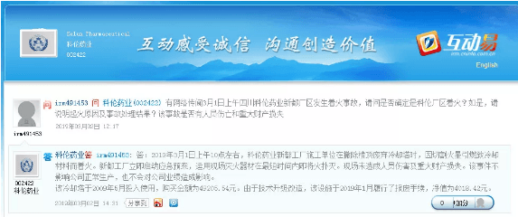 問:有網(wǎng)絡(luò)傳聞3月1日上午四川科倫藥業(yè)新都廠區(qū)發(fā)生著火事故,請問是否確定是科倫廠區(qū)著火?如是,請說明起火原因及事故處理結(jié)果?該事故是否有人員傷亡和重大財(cái)產(chǎn)損失?