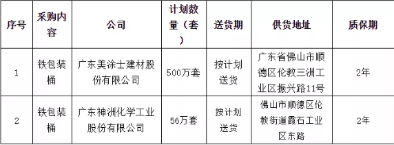 廣東美涂士建材股份有限公司根據生產計劃需求,經公司研究,針對鐵包裝桶項目進行公開招標采購,歡迎符合條件的合格投標人參加投標,有關事項如下: