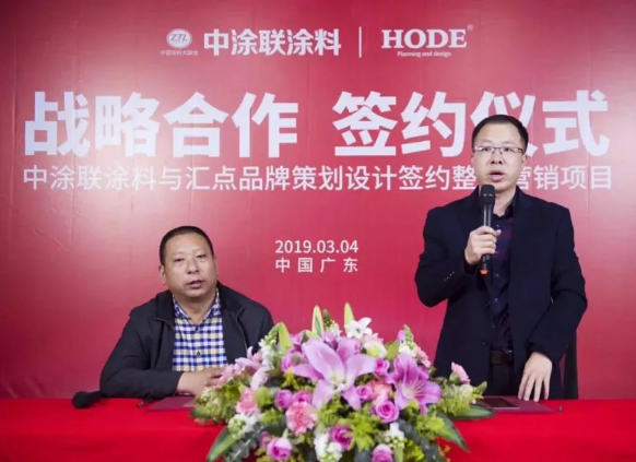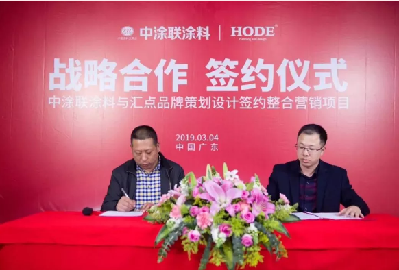 2019年03月04日下午,廣東中涂聯涂料科技與匯點品牌策劃設計簽約儀式于佛山市順德區匯點形象設計有限公司舉行。