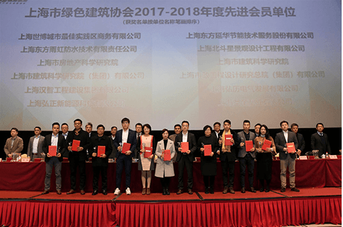 2月28日,上海市綠色建筑協會第五屆第二次會員大會在滬召開。上海東方雨虹被評為上海市綠色建筑協會“2017-2018年度先進會員單位”。