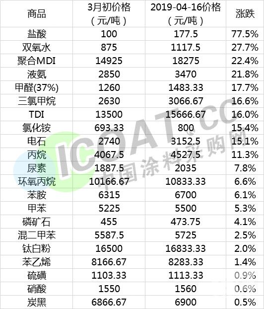 染料中間體的大幅上漲,影響的是整個化工產(chǎn)業(yè)鏈,部分原材料自3月以來一直持續(xù)處于上漲狀態(tài),以下為部分化工原材料3月初至今價格漲幅榜: