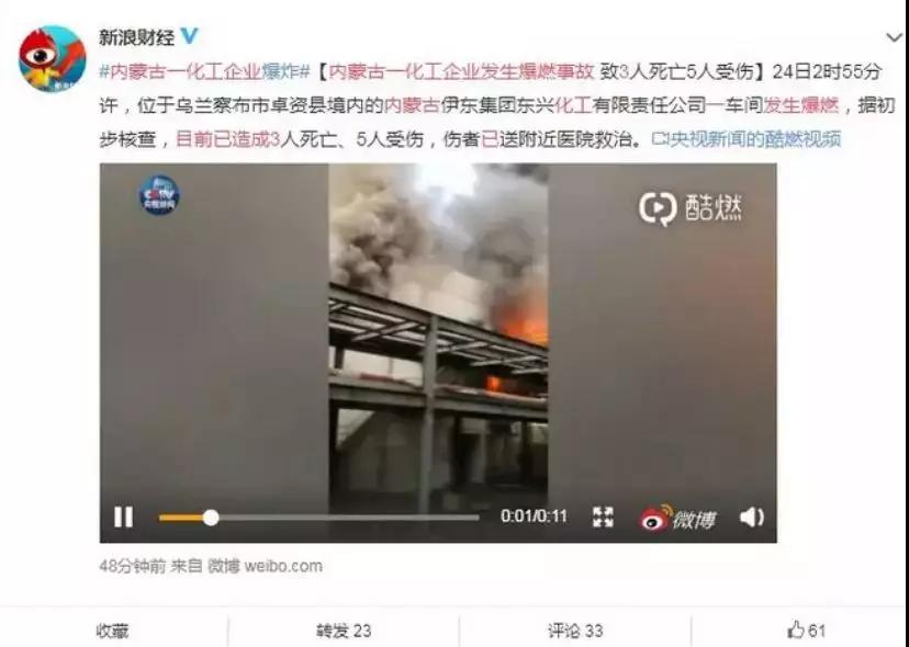 4月24日下午,記者從卓資縣4·24伊東東興化工廠爆燃事故處置工作領(lǐng)導(dǎo)小組了解到,4月24日凌晨2時(shí)55分,位于烏蘭察布市卓資縣旗下營(yíng)鎮(zhèn)的內(nèi)蒙古伊東集團(tuán)東興化工有限責(zé)任公司 PVC 車間發(fā)生爆燃事故。據(jù)進(jìn)一步核查,截至發(fā)稿,事故造成現(xiàn)場(chǎng)作業(yè)人員4人死亡,3人重傷,2人輕傷,30人輕微傷。