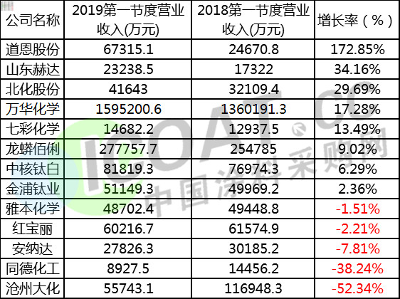 近日多家涂料企業與原材料企業發布2019年第一季度業績報告,今天的業績形勢與往年比最大的變化就是原材料企業利潤收窄,涂料企業反而利潤同比上漲。這是之前很多人沒有預料到的。以下為上市涂料企業公布第一季度營業收入: