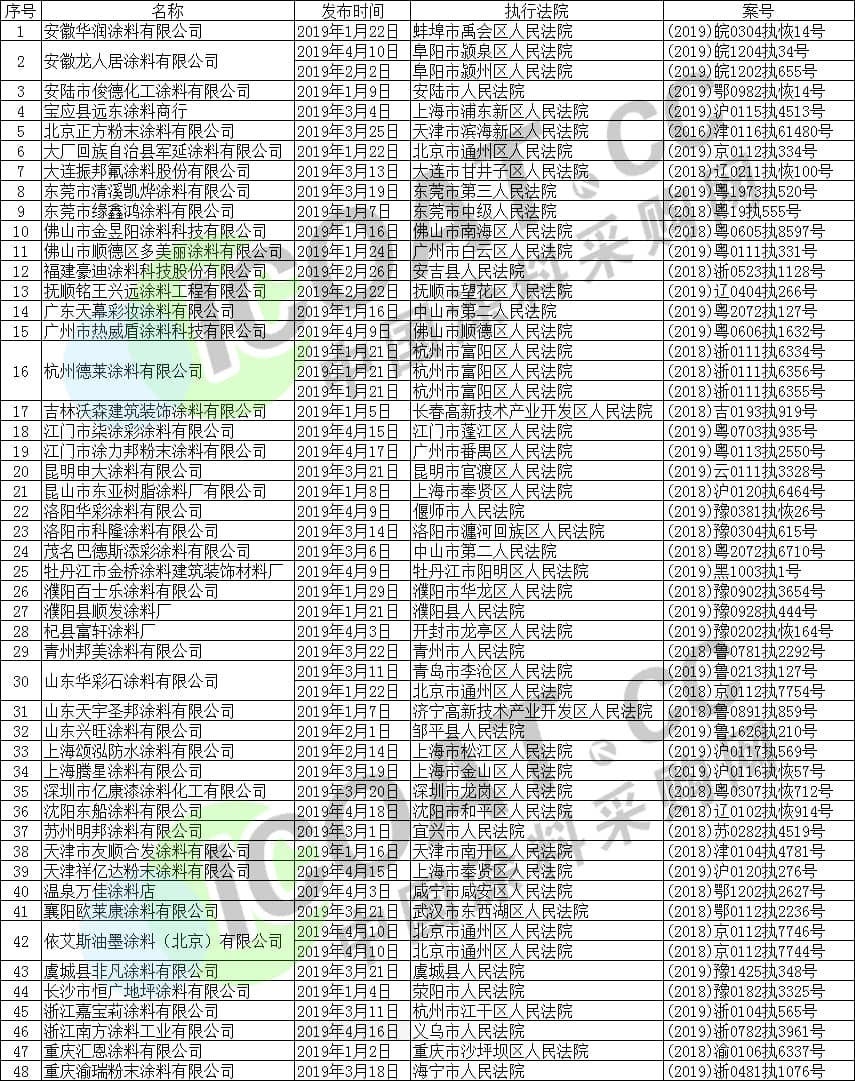 涂料企業(yè)部分失信名單