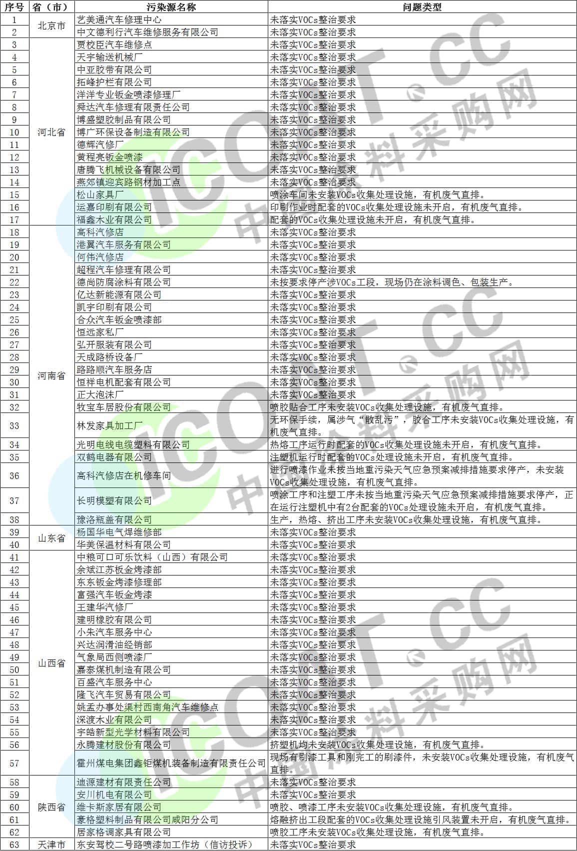 近年各省市區陸續發布了禁油令,對涂料上下游提出具體的規范和標準,專項開展VOC治理工作,深入推進涉VOC重點行業提標改造等。但由于水性工業漆的技術壁壘和成本問題,導致下游很多用戶使用“偽水性漆”,甚至油性涂料,以下為涂料采購網整理的2019年生態環境部通報的VOC整治不到位的部分企業名單: