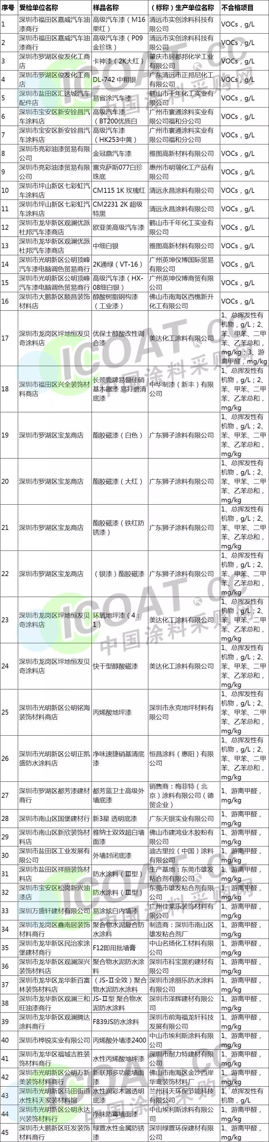 近期涂料行業(yè)質(zhì)量問題出現(xiàn)較多。各地市場監(jiān)督管理局也陸續(xù)通報了各類涂料質(zhì)量監(jiān)督抽查結(jié)果,不合格的比例令人吃驚。根據(jù)深圳市市場監(jiān)督管理局發(fā)布的信息,水性科天連續(xù)兩年三款產(chǎn)品在“總揮發(fā)性有機(jī)物”上“栽跟頭”,部分抽檢不合格企業(yè)名單: