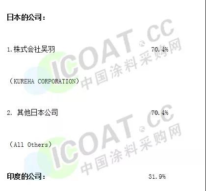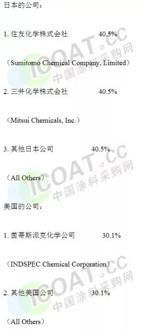 1月22日,商務部發布2019年第1號公告,對原產于日本和印度的進口鄰二氯苯反傾銷調查最終裁定,決定自2019年1月23日起,對原產于日本和印度的進口鄰二氯苯征收反傾銷稅。對各公司征收的反傾銷稅稅率如下: