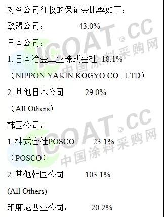 3月22日,商務部發布2019年第9號公告,對原產于歐盟、日本、韓國和印度尼西亞的進口不銹鋼鋼坯和不銹鋼熱軋板/卷反傾銷調查初步裁定。決定采用保證金形式實施臨時反傾銷措施。自2019年3月23日起,進口經營者在進口被調查產品時,應依據本初裁決定所確定的各公司的保證金比率向中華人民共和國海關提供相應的保證金。