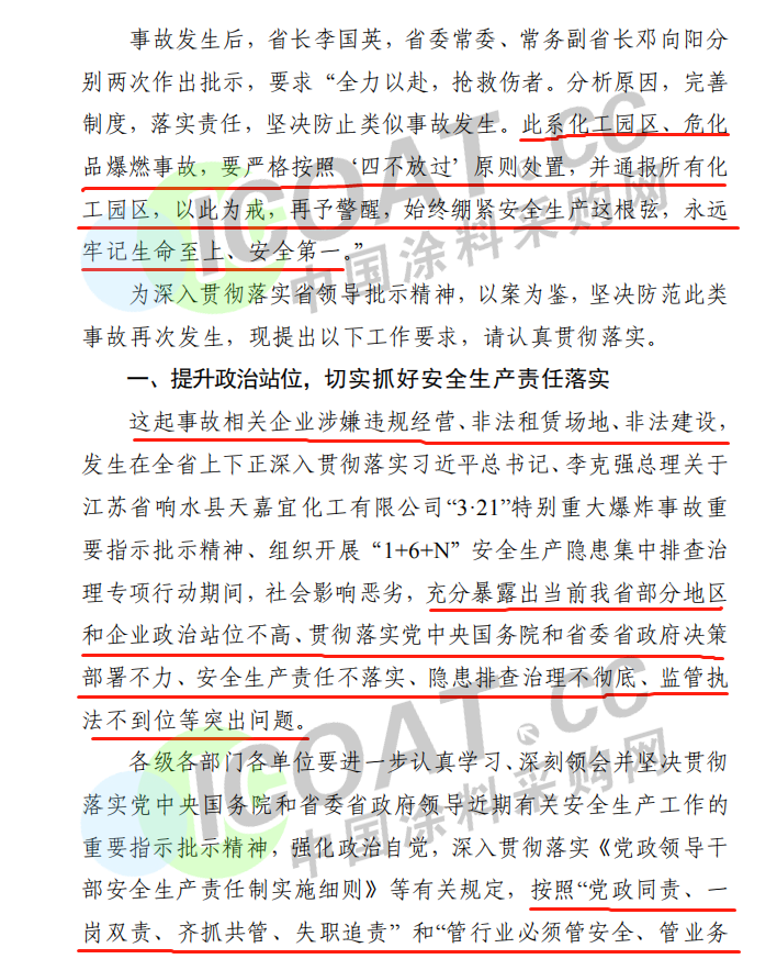 事故發生后,安徽省省長李國英,省委常委、常務副省長鄧向陽分別兩次作出批示,要求“全力以赴,搶救傷者。分析原因,完善制度,落實責任,堅決防止類似事故發生。此系化工園區、危化品爆燃事故,要嚴格按照‘四不放過’原則處置,并通報所有化工園區,以此為戒,再予警醒,始終繃緊安全生產這根弦,永遠牢記生命至上、安全第一。”