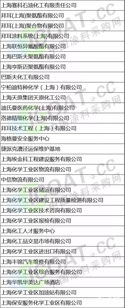 上海市部分化工企業: