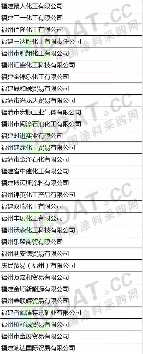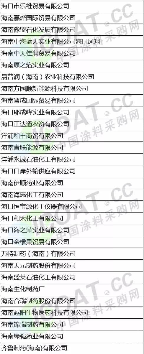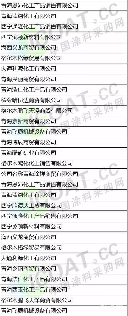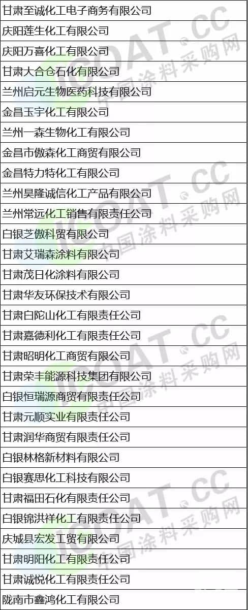(以上數據來源于涂料采購網信息中心,如有差池,請以實際名單為準!)