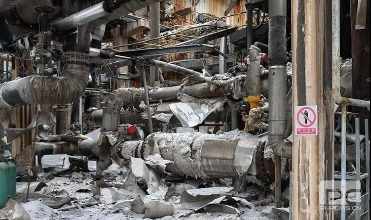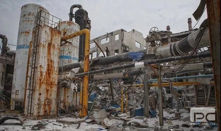 爆炸沖擊波將廠區(qū)內(nèi)工業(yè)設施損毀。