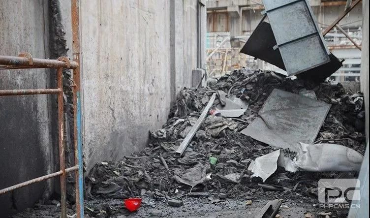 廠區(qū)內(nèi),渣土遍地,還散落著工人的安全帽。