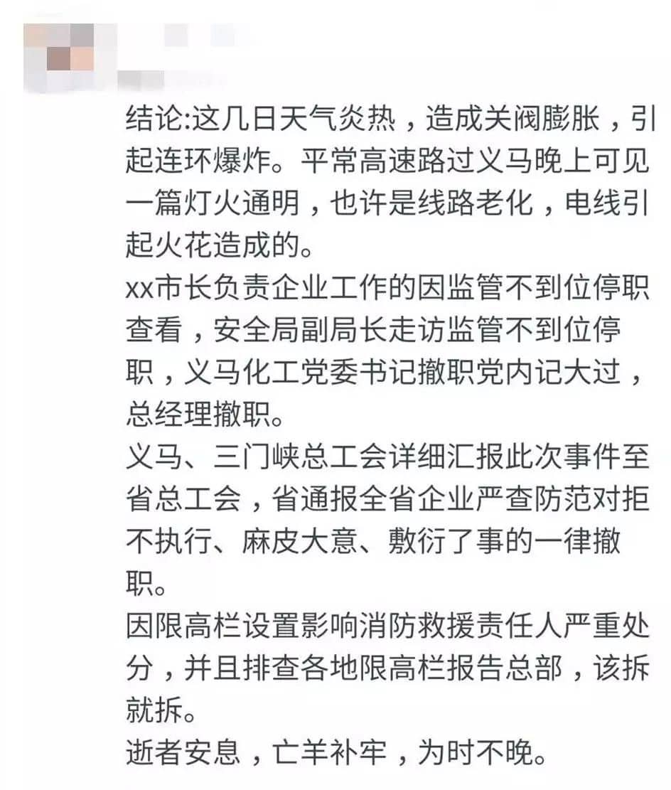 據知情人士推斷,事故原因可能是因為天氣炎熱,造成關閥膨脹引起的連環爆炸,平常高速公路過義馬晚上可見燈火通明,有可能是線路老化,電線引起火花造成的。