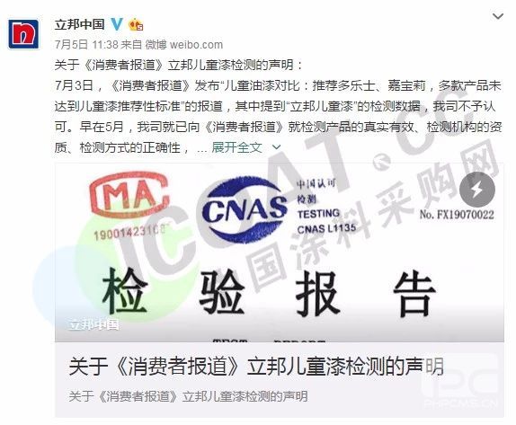 關于《消費者報道》立邦兒童漆檢測的聲明: