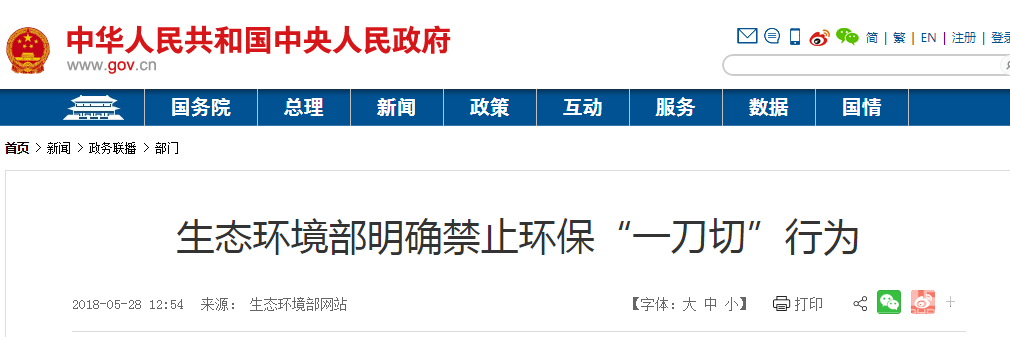 針對在以往環保督察過程中出現的各種“一刀切”行為,為防止一些地方在督察進駐期間不分青紅皂白地實施集中停工停業停產行為,影響人民群眾正常生產生活,生態環境部專門研究制定《禁止環保“一刀切”工作意見》,明確要求,嚴格禁止“一律關停”“先停再說”等敷衍應對做法,堅決避免集中停工停業停產等簡單粗暴行為。