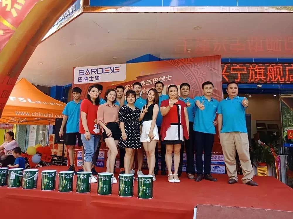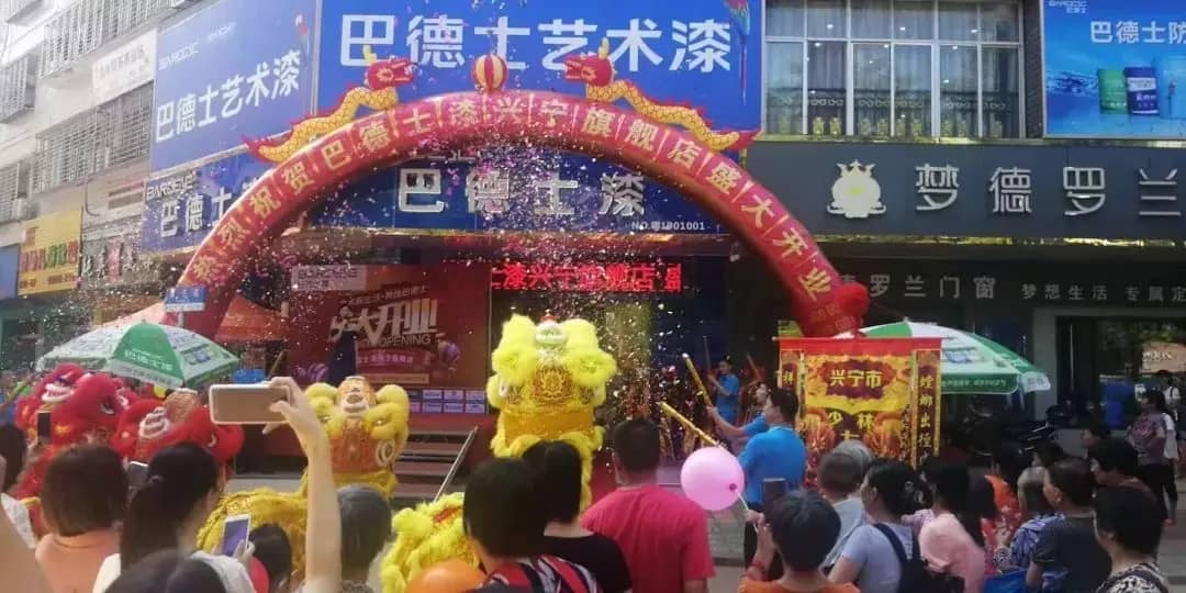 典禮現(xiàn)場彩旗飛舞,鑼鼓喧天,鳳舞龍蟠,四方賓客云集,巴德士集團全裝飾涂料事業(yè)營銷一部廣東區(qū)李曉明部長等一行代表公司到場祝賀,與眾賓客共聚一堂,為巴德士藝術(shù)漆入駐廣東興寧擂鼓助威!