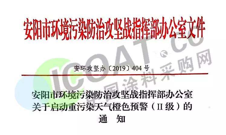 新鄉:自2019年9月23日0時起,啟動重污染天氣紅色(Ⅰ級)預警響應,機加工噴涂(包含家具行業的鐵門)和油漆生產、家具(含噴涂工藝)等行業企業采取紅色預警減排措施。立即停止建筑工地室外涉塵涉氣作業(含電焊、噴涂、粉刷等作業),相關主管部門負責督導室外噴涂、粉刷、切割、護坡噴漿停止作業。 許昌:9月24日12時啟動重污染天氣橙色預警,實施II級應急響應措施,確保揮發性有機物減排比例達到全社會排放總量的20%以上。使用溶劑型涂料的家具制造企業、使用溶劑型油墨的包裝印刷企業(不含書報刊、本冊平板印刷)停產。使用非溶劑型涂料的家具制造企業、使用溶劑型油墨的包裝印刷企業(不含書報刊、本冊平板印刷)及使用低VOCs含量涂料的工業涂裝企業限產50%(以生產線計),涂料制造及使用溶劑型涂料的工業涂裝企業涉VOCs工序停產。